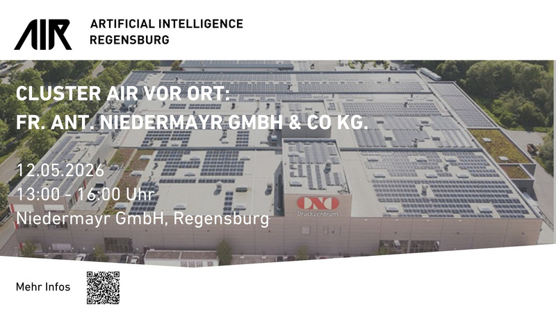 Das Cluster AIR Artificial Intelligence Regensburg und die Fr. Ant. Niedermayr GmbH & Co. KG laden Sie herzlich ein zur gemeinsamen „Cluster AIR vor Ort“-Veranstaltung am 12.05.2026.