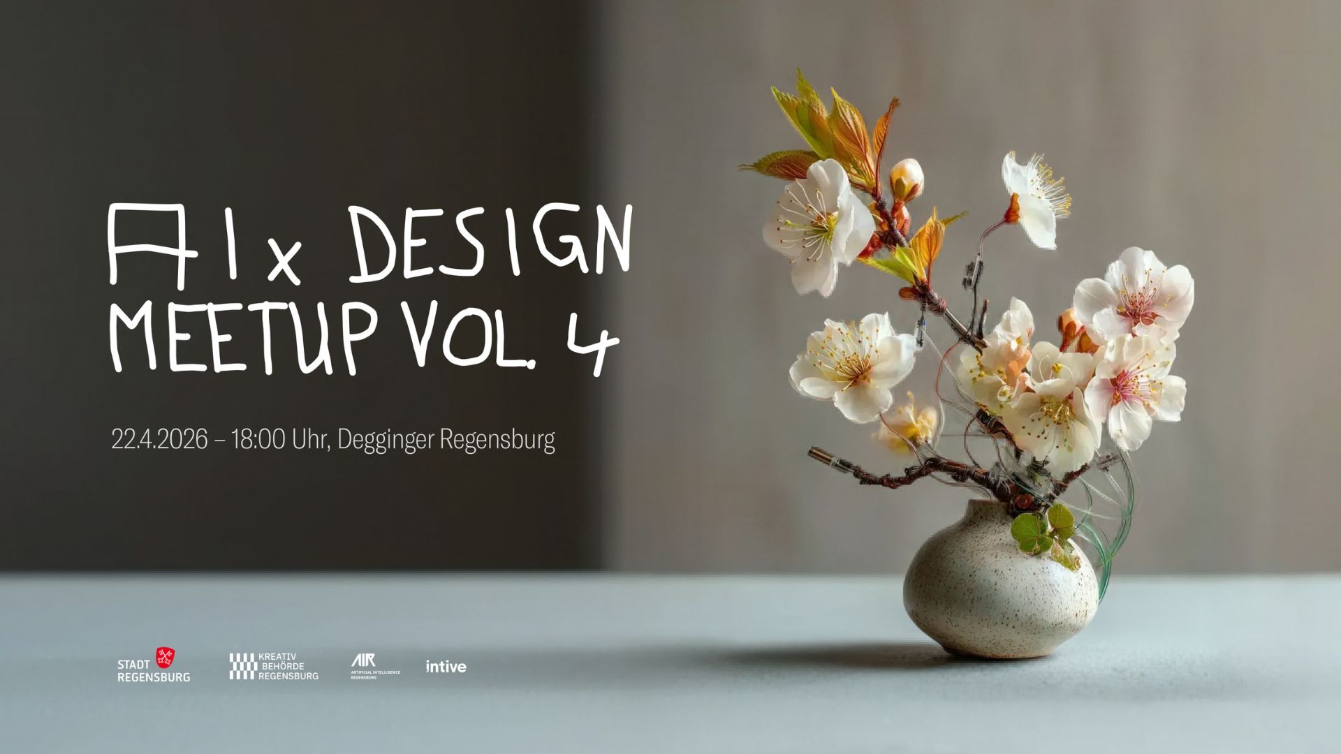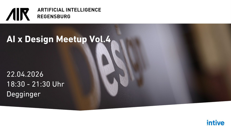 AIR Artificial Intelligence Regensburg, die Kreativbehörde Regensburg und intive laden herzlich zum vierten AI x Design Meetup am 22.04.2026 ins Degginger ein. Einlass ist ab 18 Uhr.
