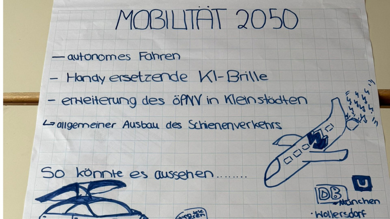 In den Workshops der Zukunftswerkstatt konnten die Schüler:innen ausgewählte Themen wie Fake News, Social Media oder Unternehmensgründung bearbeiten. Die TechBase Regensburg GmbH war wiederholt mit ihren Technologienetzwerken Cluster AIR-Artificial Intelligence Regensburg und Cluster Mobility & Logistics am Start und hielt einen Workshop zu „KI auf der Überholspur“. Zwei Stunden lang entwickelten und präsentierten 30 Schüler:innen in Gruppen ihre Szenarien der Mobilität im Jahre 2050. Sie lebten ihre Kreativität mit Ideen zu autonomem Fahren, Tunnels für Gütertransport, Bodenplatten zur Stromerzeugung durch Berührung, Nachhaltigkeit und E-Flugzeugen aus. Im letzten Teil des Workshops kristallisierten sich sehr schnell zwei Hauptwünsche an die Politik und die Wirtschaft heraus: einerseits ein flächendeckender und vor allem gut strukturierter öffentlicher Nahverkehr, andererseits mehr und schneller umgesetzte Gesetzgebung zu KI.