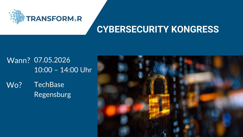 Das Transformationsnetzwerk transform.r lädt Sie am 07. Mai 2026 herzlich ein zum Cybersecurity Kongress in der TechBase in Regensburg.